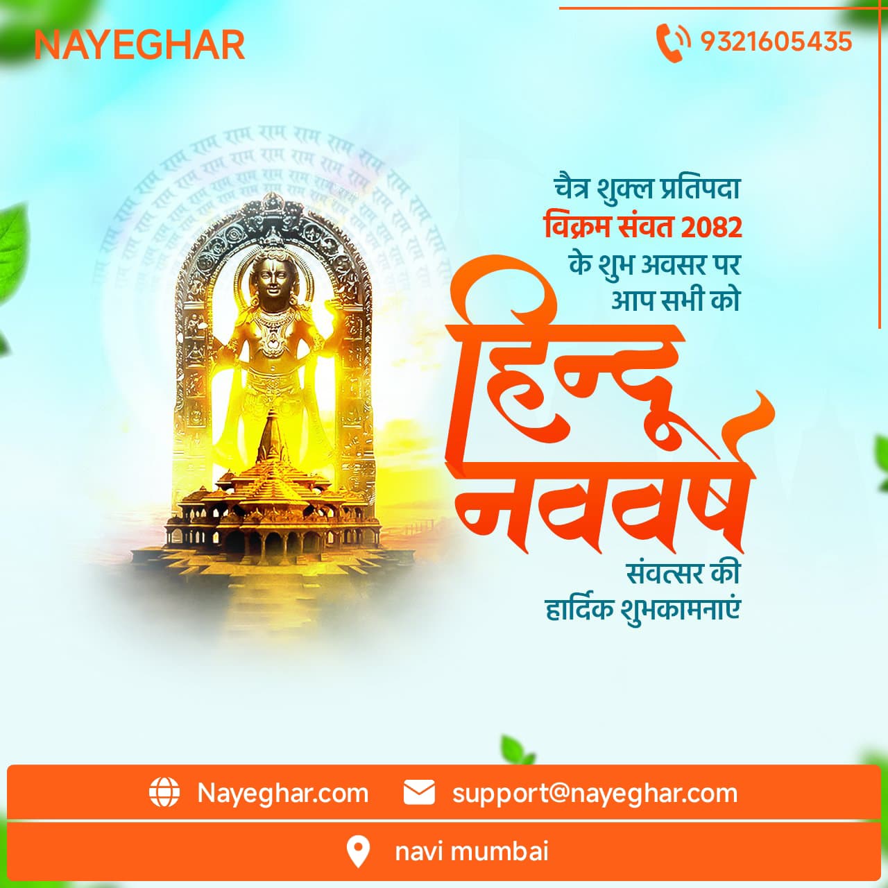 भारतीय ज्योतिष के अनुसार, विक्रम संवत का प्रारंभ गृह निर्माण और निवेश के लिए अत्यंत शुभ माना जाता है। अगर आप इस साल घर खरीदने की योजना बना रहे हैं, तो NAYEGHAR आपके लिए बेहतरीन रियल एस्टेट विकल्प लेकर आया है। नवी मुंबई और आसपास के क्षेत्रों में बेहतरीन आवासीय परियोजनाओं की जानकारी और निवेश के अवसरों के लिए हमसे संपर्क करें।