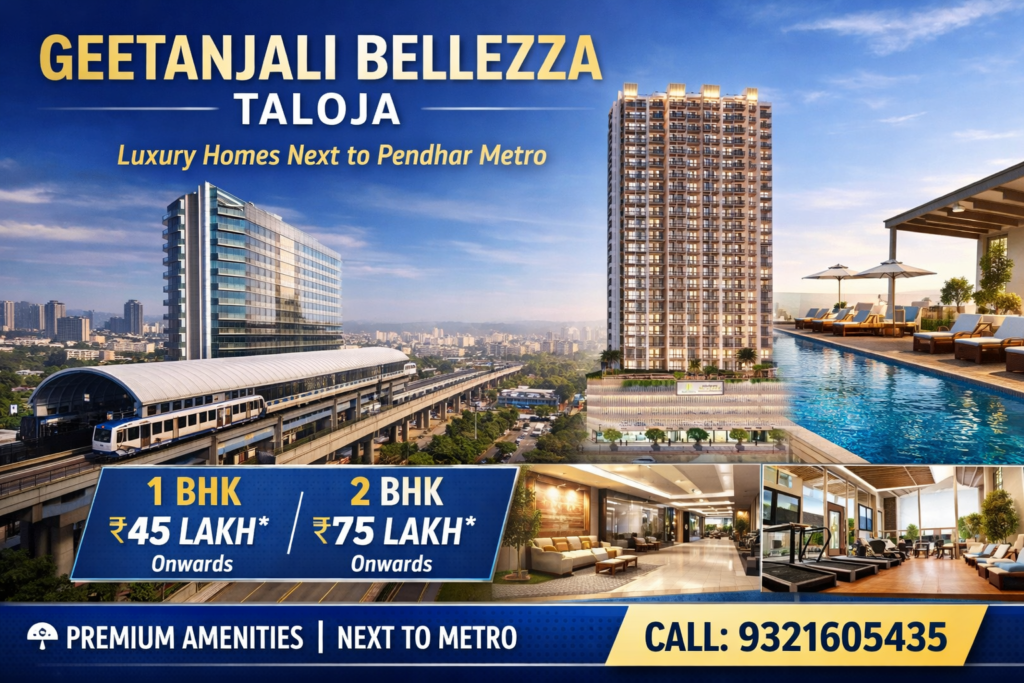 If you are looking for a premium home in Navi Mumbai with metro connectivity, high-rise lifestyle, and strong investment potential, Geetanjali Bellezza in Taloja is one of the most promising projects today. Strategically located next to Pendhar Metro Station, this G+35 storey landmark tower stands tall as one of the most iconic residential developments in the area. Developed on a CIDCO plot, Geetanjali...