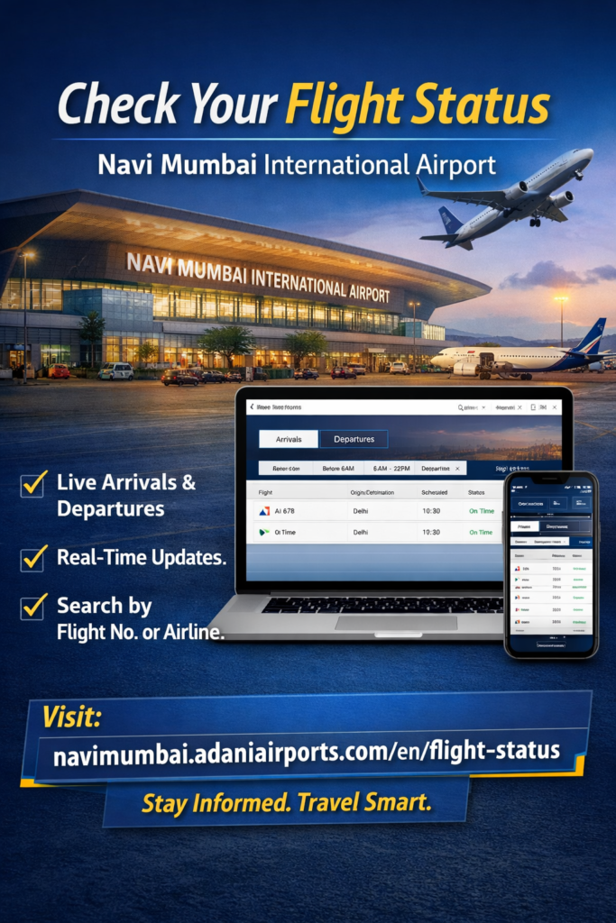 The Navi Mumbai International Airport (NMIA), operated by Adani Airports, offers a dedicated Flight Status page that allows passengers to check live arrival and departure updates quickly and easily.