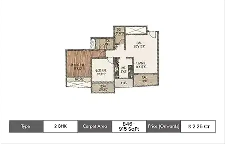 - Carpet Area: 764 – 924 sq.ft.