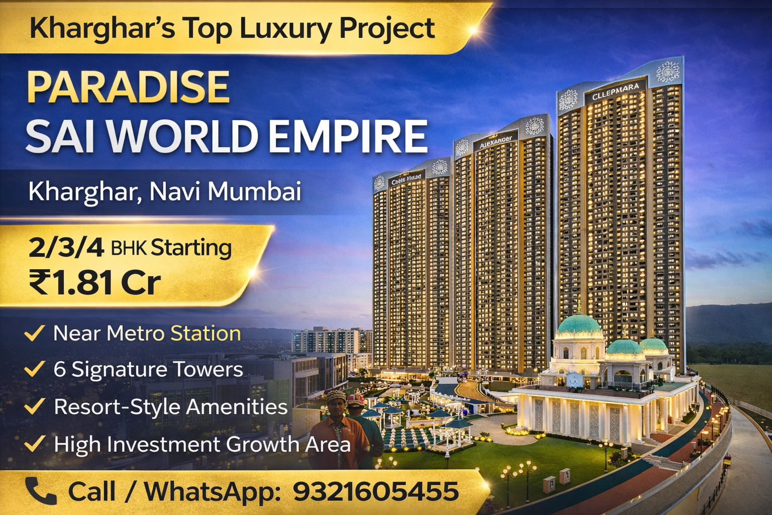 Within this evolving landscape, Paradise Sai World Empire stands out as one of the most iconic luxury residential townships in Kharghar. Designed with a global architectural vision and inspired by royal lifestyles, this project is not just about buying a home—it is about upgrading your lifestyle.