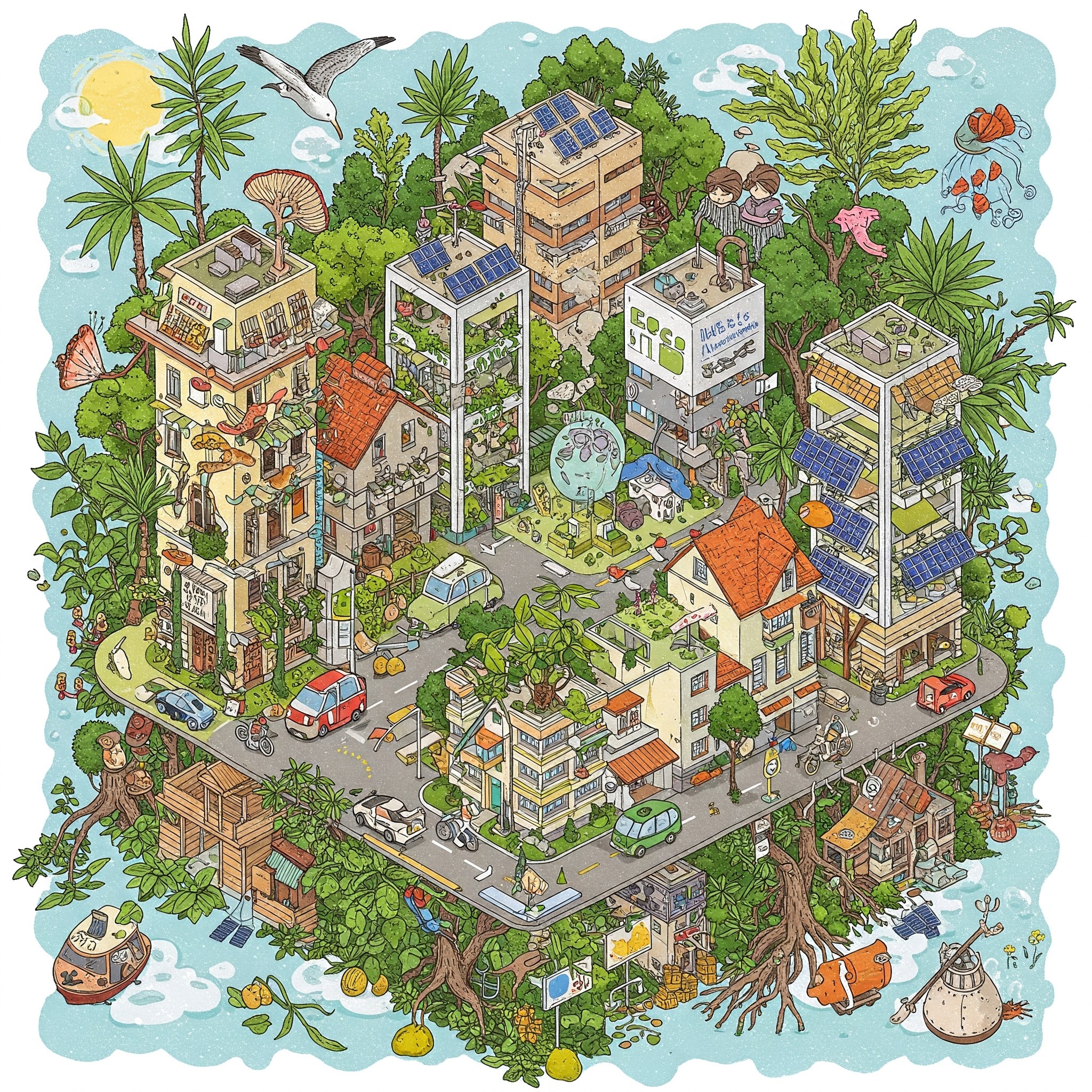 - Green Roofs and Walls: